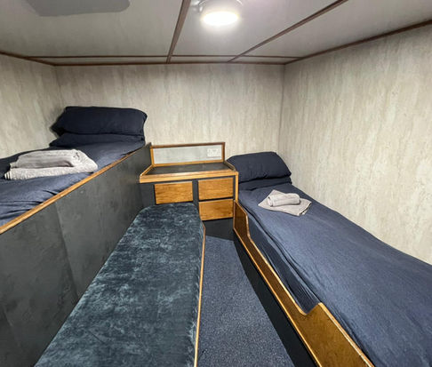 We offer 2 additional cabins that can accommodate 4 individuals. These cabins are accessed via a ladder from the main deck and feature their own wet room/toilet facilities. Enjoy the privacy of these cabins, which have separate access from the main accommodation area.